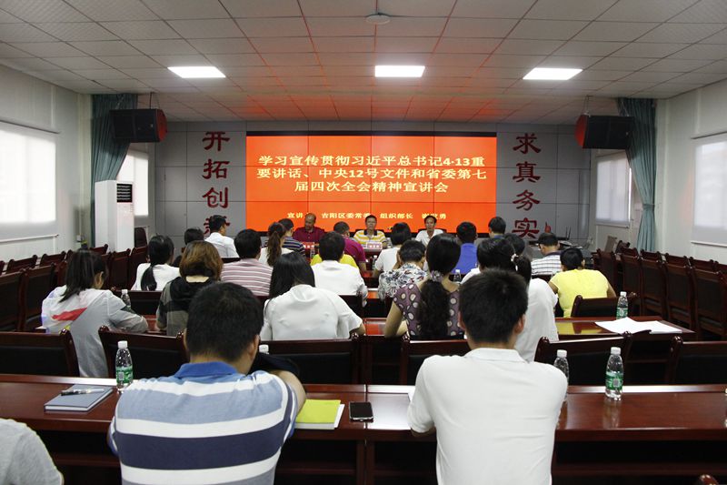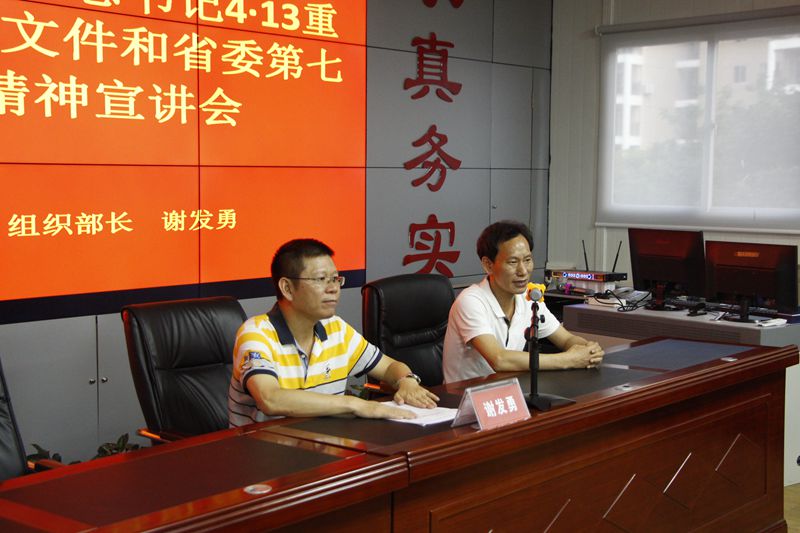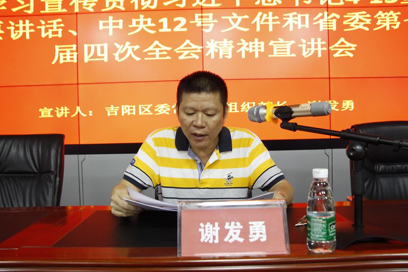 根據(jù)吉陽區(qū)委統(tǒng)一部署,學習貫徹習近平總書記“4·13”重要講話、中央12號文件和省委第七屆四次全會精神宣講會在明佳集團三樓會議室舉行。吉陽區(qū)委常委、組織部長謝發(fā)勇作宣講報告。集團黨支部書記、董事長陳明主持宣講會。