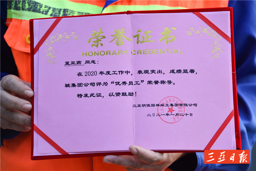 “亞燕是一個(gè)工作負(fù)責(zé)、認(rèn)真的員工,她工作讓我很放心,平時(shí)她還主動(dòng)幫助其他工人,累活也搶著干。”明佳環(huán)衛(wèi)天涯一隊(duì)隊(duì)長林海菊這樣評(píng)價(jià)藍(lán)亞燕。