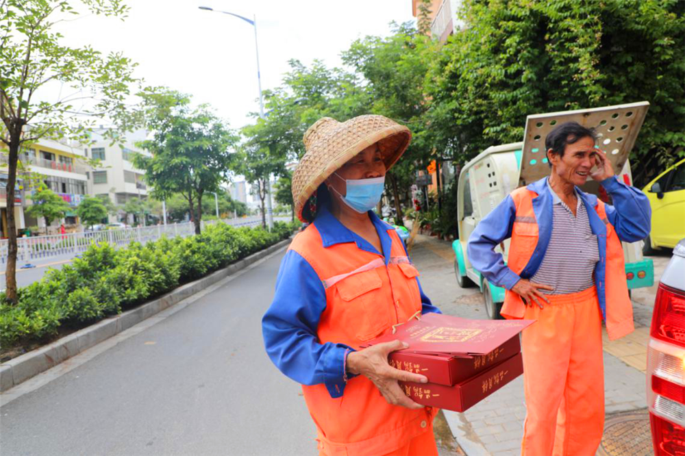 2019年中秋佳節(jié)來臨之際,為了使明佳集團(tuán)公司全體員工感受到“大家庭”的溫暖,明佳集團(tuán)黨支部、明佳集團(tuán)工會聯(lián)合組織開展了“中秋佳節(jié)、情暖職工”活動。自9月5日起,明佳集團(tuán)工會主席高斐斐、明佳集團(tuán)黨支部宣傳委員陳冬梅和各區(qū)域領(lǐng)導(dǎo)分別在集團(tuán)公司、各環(huán)衛(wèi)隊為職工送上中秋月餅和涼茶,并致以節(jié)日的問候和衷心的祝福。
